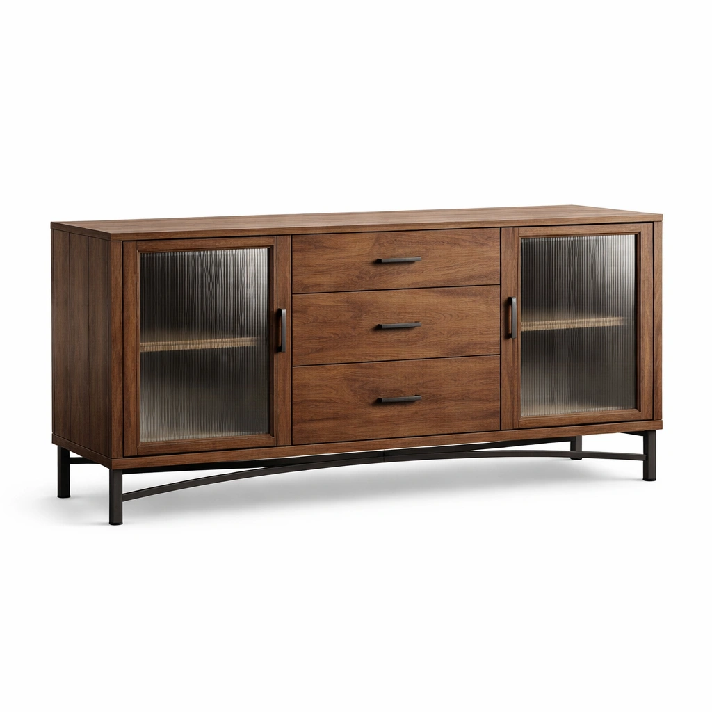 Material Secundario: Marco de acero, puertas de vidrio templado acanalado de 4 mm.