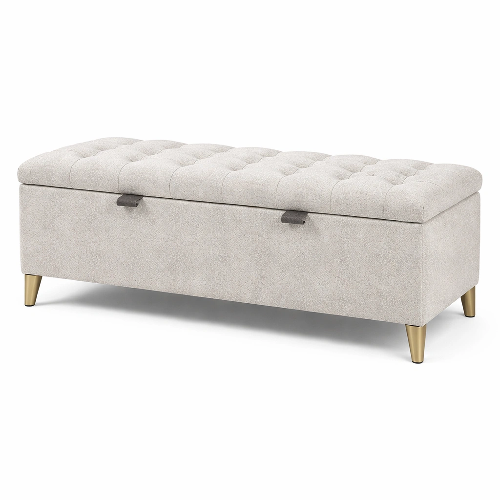 Características: Tapa acolchada con botones decorativos, fácil acceso al espacio de almacenamiento